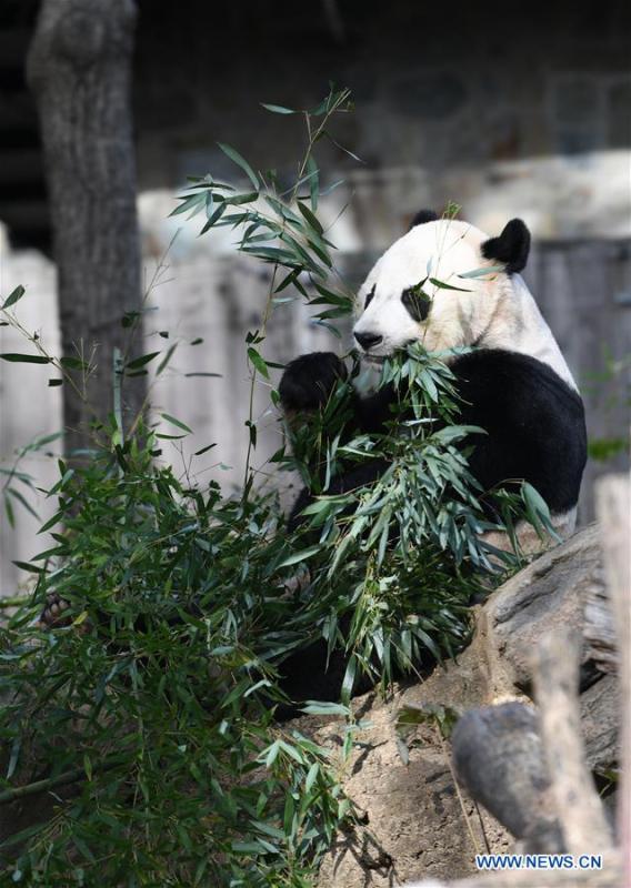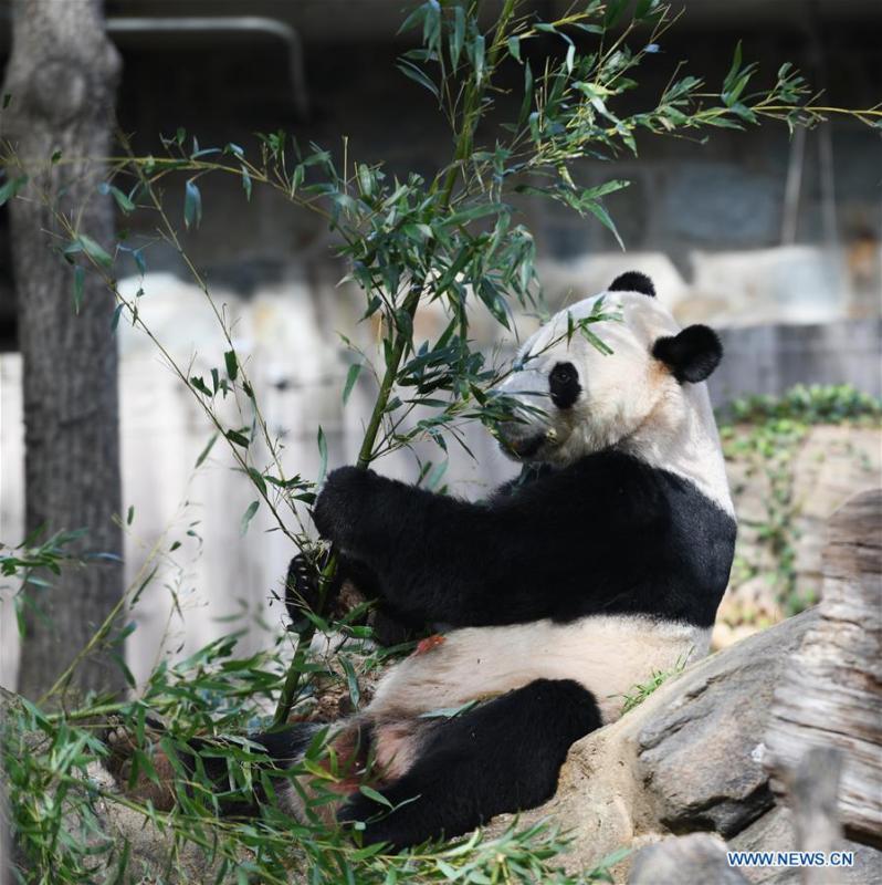 U.S.-born male giant panda Bei Bei is seen at the Smithsonian's National Zoo in Washington D.C., the United States, on Nov. 11, 2019. A weeklong farewell party for U.S.-born male giant panda Bei Bei, who is to depart the Smithsonian's National Zoo for China later this month, kicked off here on Monday. Bei Bei's departure, scheduled for Nov. 19, is part of the U.S. national zoo's cooperative breeding agreement with the China Wildlife Conservation Association that all cubs born here shall move to China after the fourth birthday. Bei Bei turned four on Aug. 22. (Xinhua/Liu Jie)