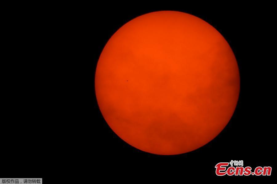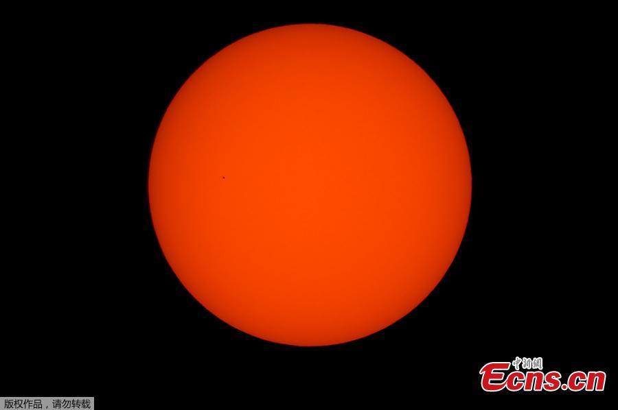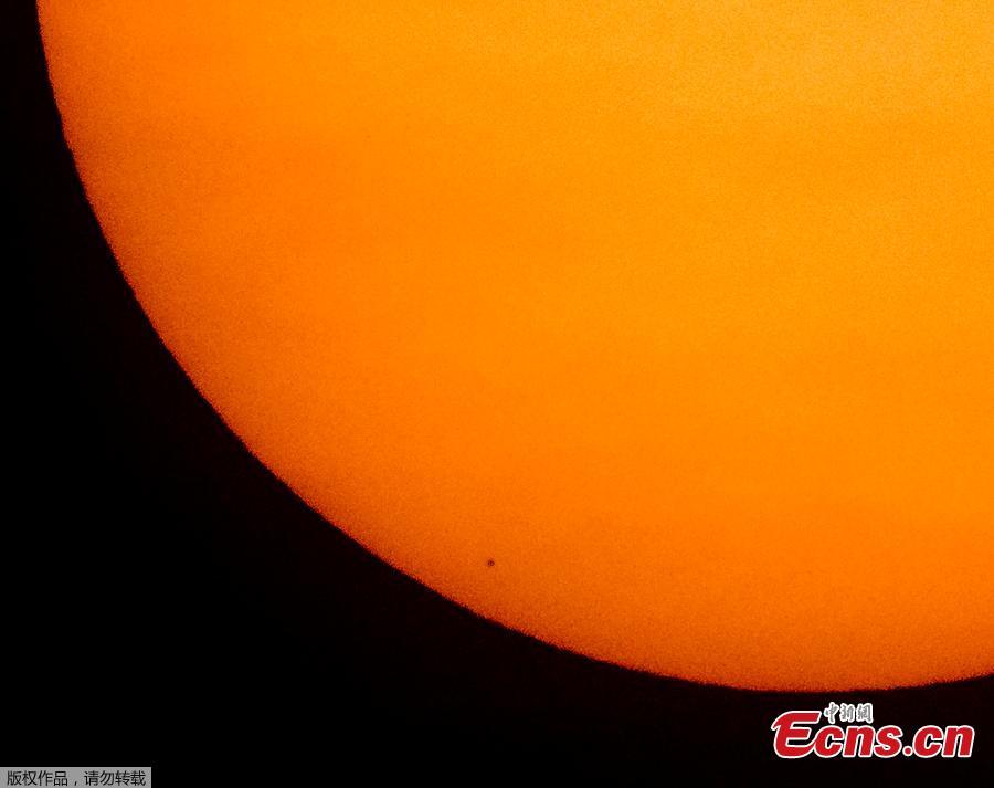 This photo shows planet Mercury passing in front of the sun, on November 11, 2019, taken from Hede-Bazouges, western France. (Photo/Agencies)