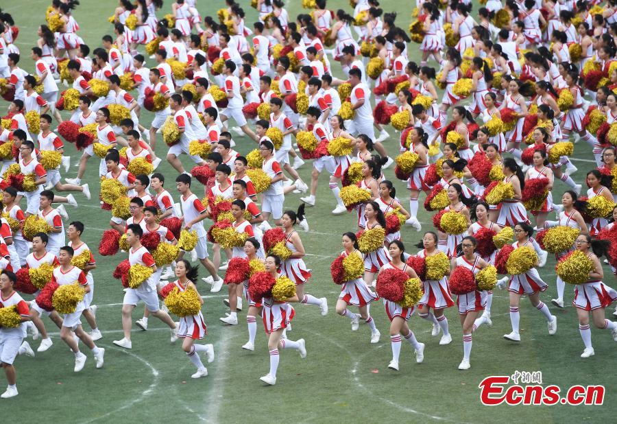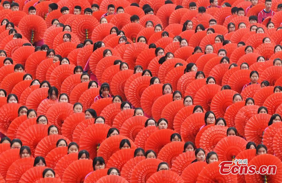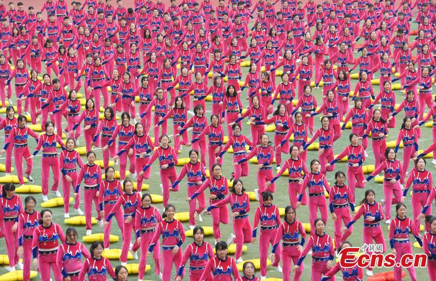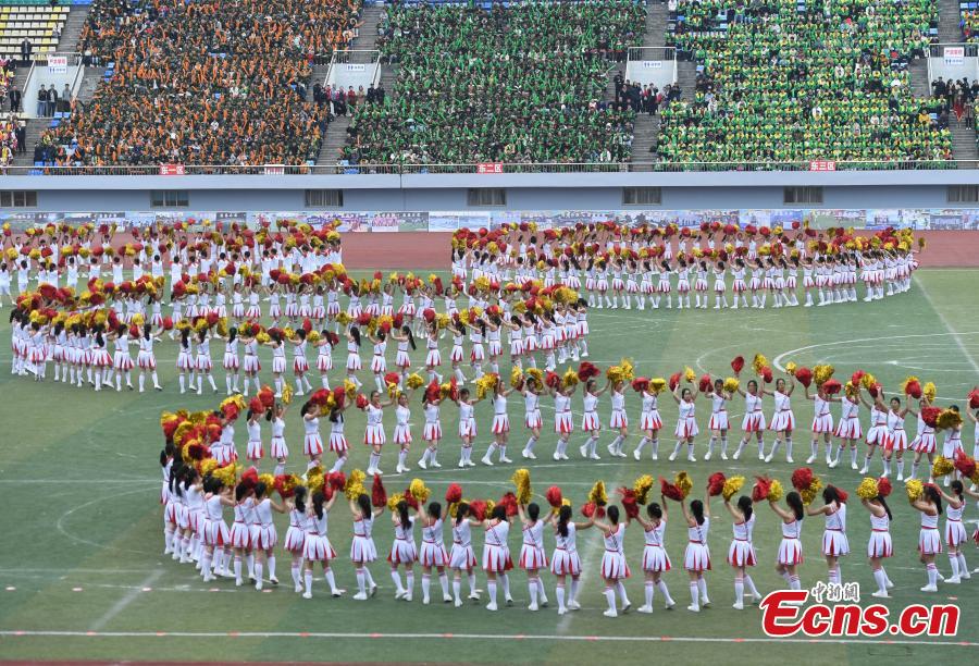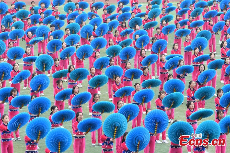 Students perform at the opening ceremony of the Ethnic Games in Shizhu County, Southwest China’s Chongqing Municipality, Nov. 11, 2019. The Ethnic Games mainly feature traditional sports of ethnic groups in the county including individual and group events like tug of war. The opening ceremony included demonstrations of Tai Chi, group calisthenics and the hand-waving dance of the Tujia people. (Photo: China News Service/Chen Chao)