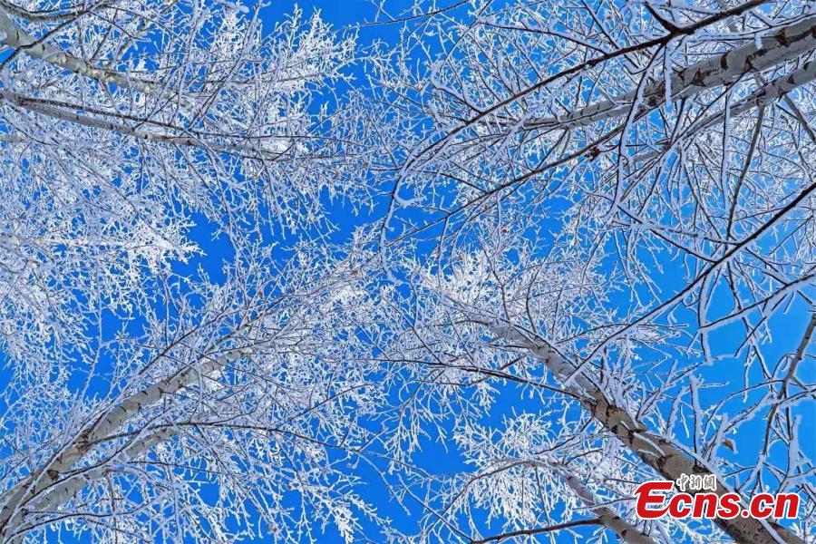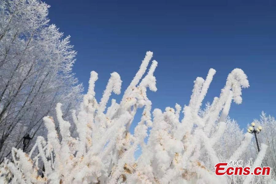 Everything from leaves to grass is covered by rime, sparkling as the sun rises in Argun City, Northwest China’s Inner Mongolia Autonomous Region, Nov. 10, 2019. (Photo: China News Service/Li Zenggen)