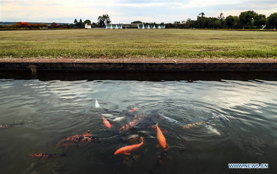 Photo taken on Nov. 2, 2019 shows fish at a pond of the presidential palace in Brasilia, Brazil. The 11th BRICS summit will be held in Brasilia on Nov. 13-14. (Xinhua/Lan Hongguang)