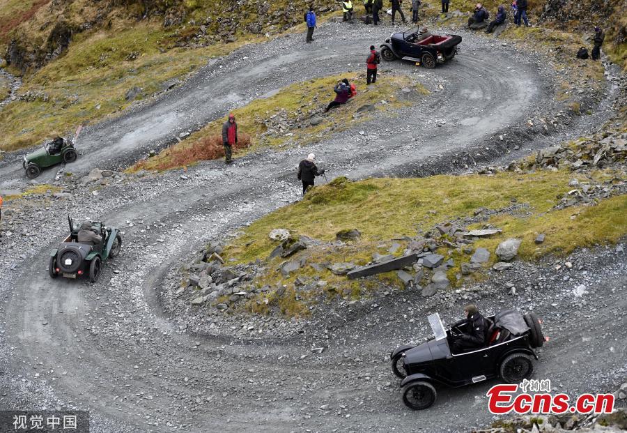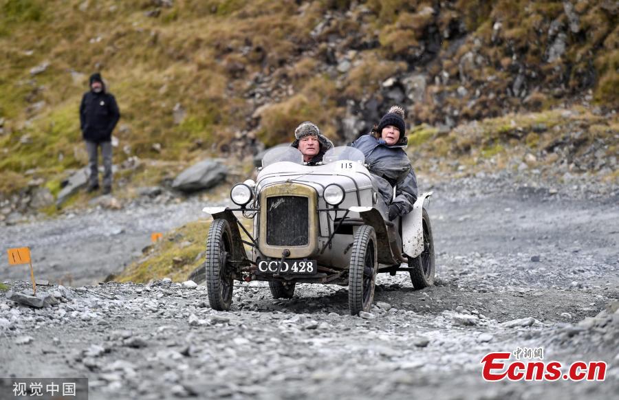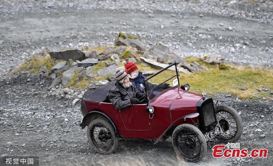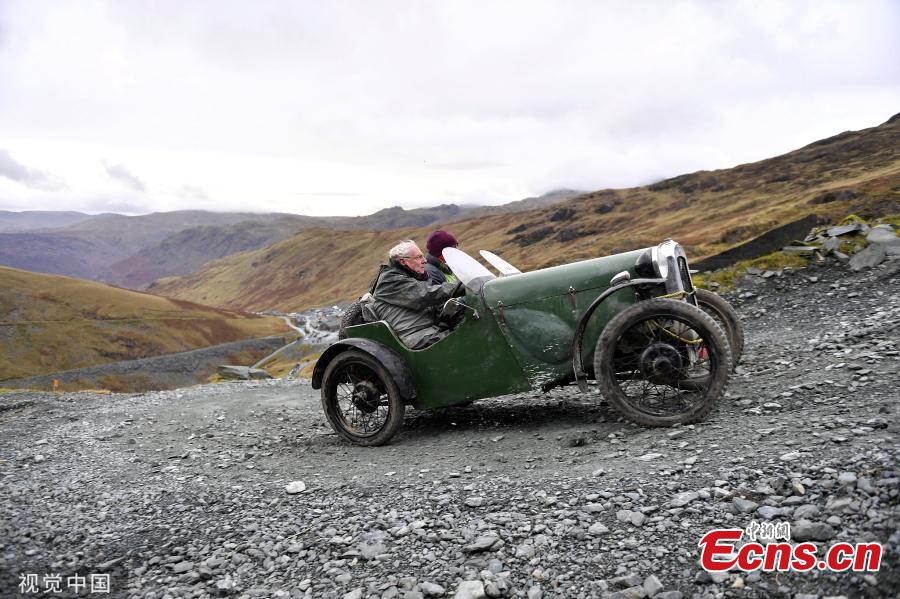 Fred Waite steers his 1935 Austin 7 Cambridge up the hill. The Vintage Sports Car Club holds their annual Lakeland Trial. Drivers tackled the rock strewn trial stage at Honister Slate Mine in the Lake District, Cumbria. Tthe event involves around 100 vintage sports cars taking on the steep gravel roads of Honister Slate Mine. (Photo/VCG)