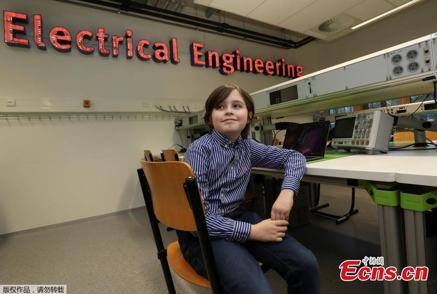 Nine-year-old Belgian student Laurent Simons, who studies electrical engineering and who will soon become the youngest university graduate in the world, poses in a laboratory at the University of Technology in Eindhoven, Netherlands November 20, 2019. (Photo/Agencies)