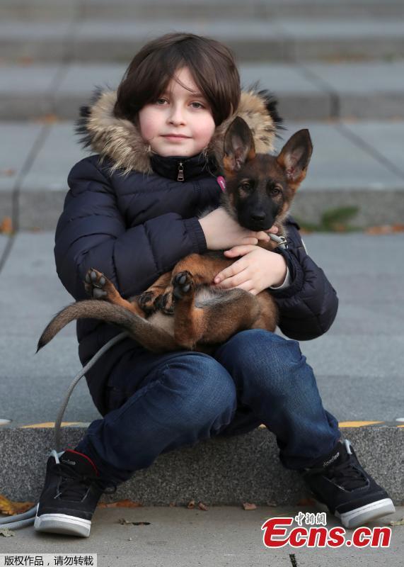 Nine-year-old Belgian student Laurent Simons, who studies electrical engineering and who will soon become the youngest university graduate in the world, poses with his dog Sammie at the University of Technology in Eindhoven, Netherlands November 20, 2019. Picture taken November 20, 2019. (Photo/Agencies)