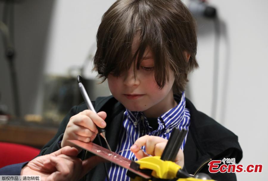 Nine-year-old Belgian student Laurent Simons, who studies electrical engineering and who will soon become the youngest university graduate in the world, is seen in a laboratory at the University of Technology in Eindhoven, Netherlands November 20, 2019. (Photo/Agencies)