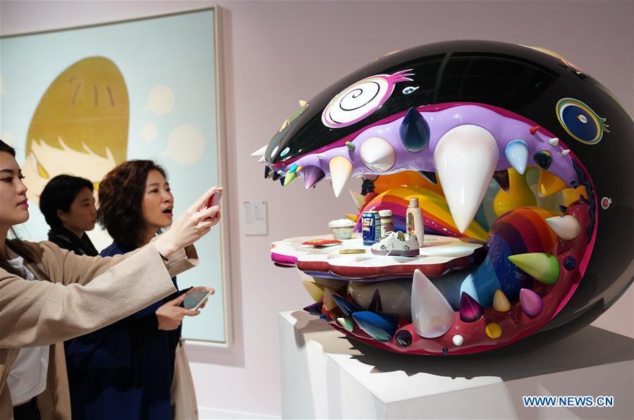 Visitors watch an artwork for auction during a media preview of the Christie's Hong Kong autumn auction 2019 in Hong Kong, south China, Nov. 21, 2019. This year's Christie's autumn auction will be held from Nov. 22 to 27. (Xinhua/Li Gang)