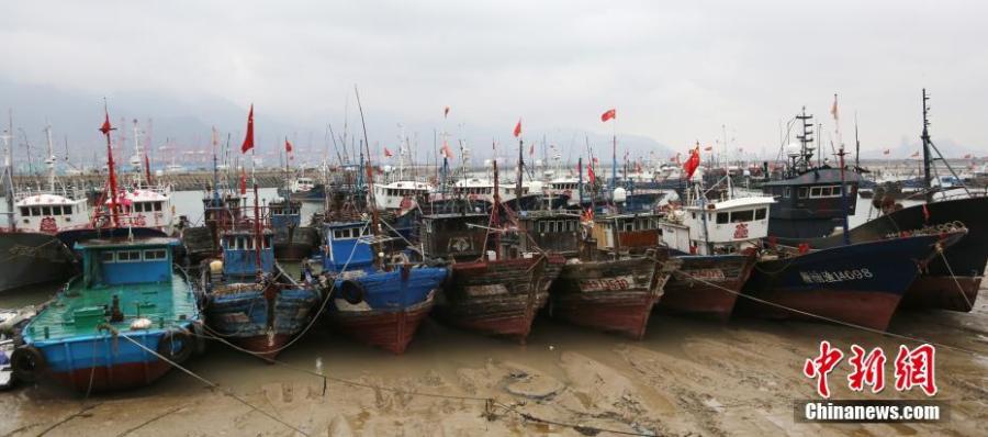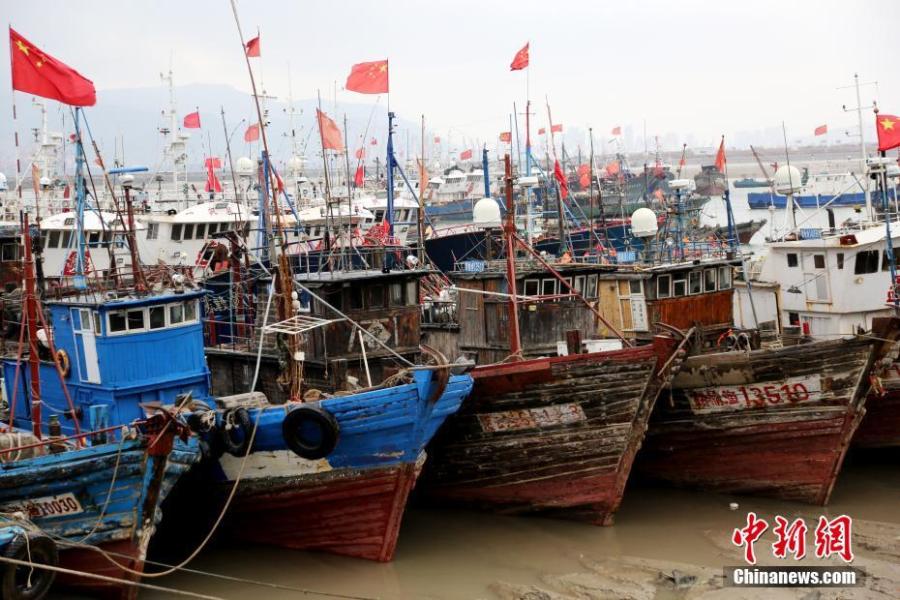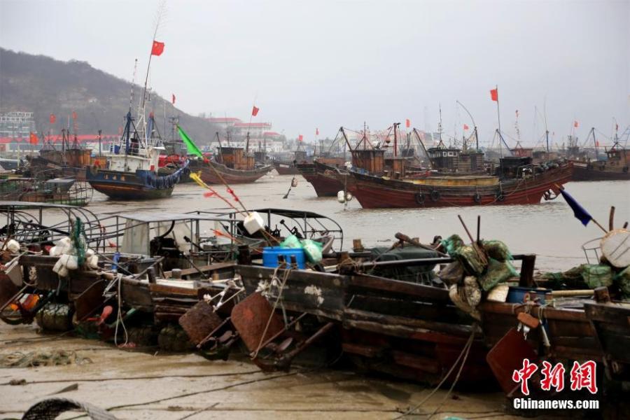 Fishing boats berth at a port in Lianyungang City, East China's Jiangsu Province, Nov. 24, 2019. The province has issued a series of alerts ahead of a forecasted cold front, strong winds and heavy fog. (Photo: China News Service/Wang Chun)