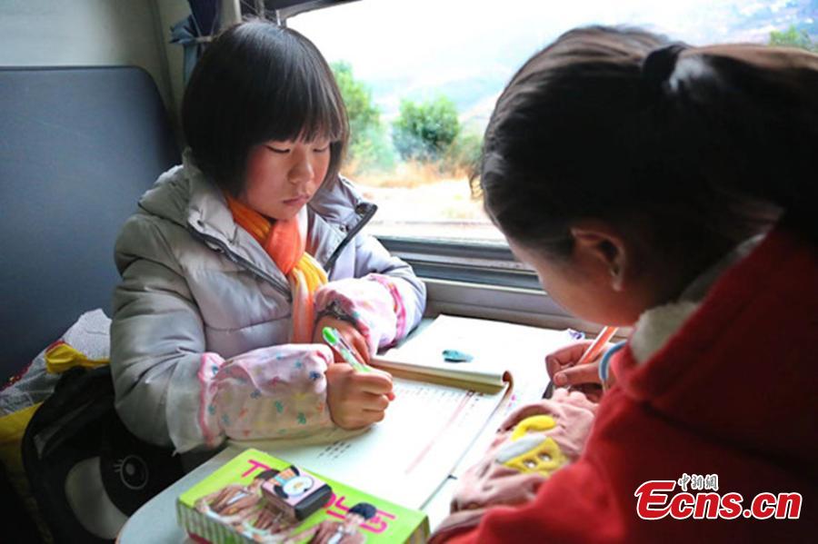 Old-fashioned, low-speed green trains are still in operation despite bullet trains clearly dominating the rapid railway network throughout China. The No. 5633 and No. 5634 trains, linking Puxiong Railway Station in Yuexi County, Liangshan Yi Autonomous Prefecture and Panzhihua City in Sichuan Province, have been running since 1970, and today remain the key daily commuting option for more than 2,000 students of the Yi ethnic group and other local residents. Some students often take the opportunity to finish assignments while on the train, passing through mountain scenery, as can be seen from these photos. (Photo: China News Service/Hu Zhongping)