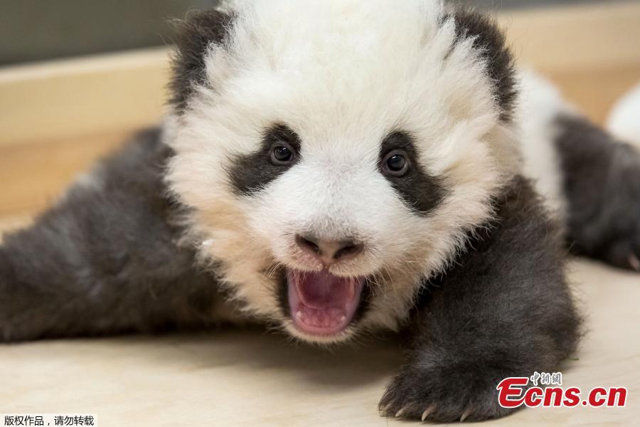 This picture released on November 28, 2019 and taken on November 27, 2019 by the Zoo Berlin shows one of Berlin's three-month-old giant panda cubs yawning at the Zoologischer Garten zoo in Berlin. It is the first giant panda offspring in Germany: The Berlin panda Meng Meng gave birth to twins on August 31, 2019. On loan from China, Meng Meng and male panda Jiao Qing arrived in Berlin in June 2017. While the cubs are born in Berlin, they remain Chinese and must be returned to China within four years after they have been weaned. (Photo/Agencies)