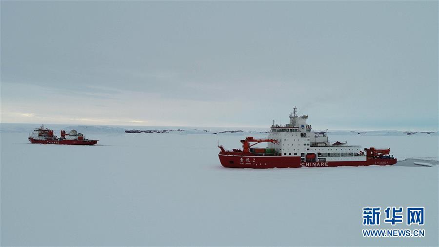 The photo taken on December 1, 2019 shows China's polar icebreakers Xuelong and Xuelong 2 reached the waters near the Zhongshan Station in Antarctica. (Photo/Xinhua)