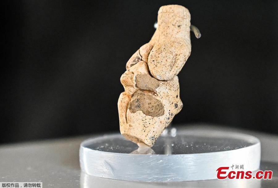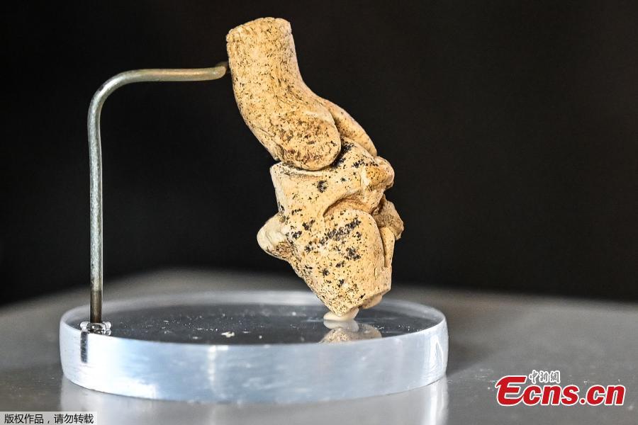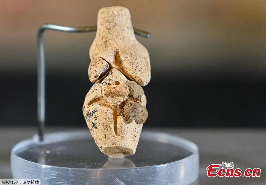 This picture taken on December 4, 2019 shows a 4 centimeters high paleolithic statuette named "Venus of Renancourt", in Amiens. A small paleolithic statuette, from the series called "Venus of Renancourt", exceptionally well preserved, was discovered last July in a prehistoric site in Amiens (northern France), constituting a rare testimony of the gravettian art typical of hunters-gatherers, revealed the Inrap on December 4. (Photo/Agencies)