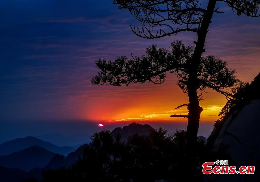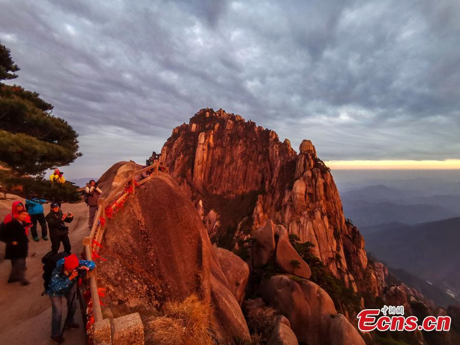 Photo taken on December 5, 2019 shows the amazing scenery of flaming cloud in Huangshan city, East China's Anhui province. Mount Huangshan, a famous natural resort in Eastern China's Anhui province, looks pretty in all seasons.(Photo: China News Service/Bi Jun)