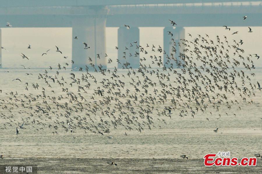 Avid bird-watchers can now head to East China's Qingdao, Shandong province, to check out the stunning view of thousands of birds soaring in the sky. This winter, the coastal city attracts over 3,000 wild ducks, becoming one of the main destinations for the winter bird taking shelter from the cold of North China. (Photo/VCG)