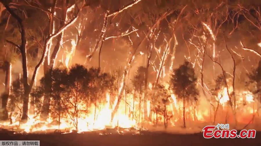 A fire blazes across bush in Newnes Plateau, New South Walles, Australia, December 7, 2019 in this picture grab obtained from a social media video on December 8, 2019.(Photo/Agencies)
