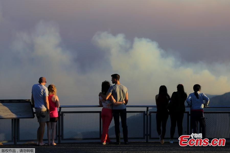 People watch as smoke from the Green Wattle Creek fire is seen from Echo Point lookout in Katoomba, as bushfires continue to blaze in New South Wales, Australia, December 6, 2019. (Photo/Agencies)