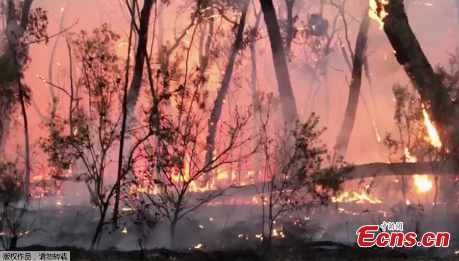 A fire blazes across bush in Newnes Plateau, New South Walles, Australia, December 7, 2019 in this picture grab obtained from a social media video on December 8, 2019. (Photo/Agencies)