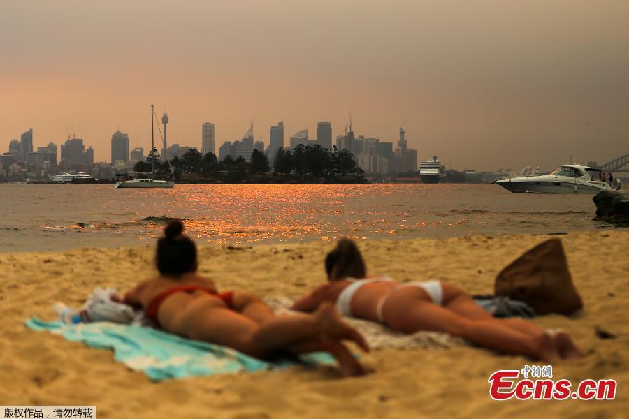 Beachgoers are seen on Milk Beach as smoke haze from bushfires in New South Wales blankets the CBD in Sydney, Australia December 7, 2019. (Photo/Agencies)