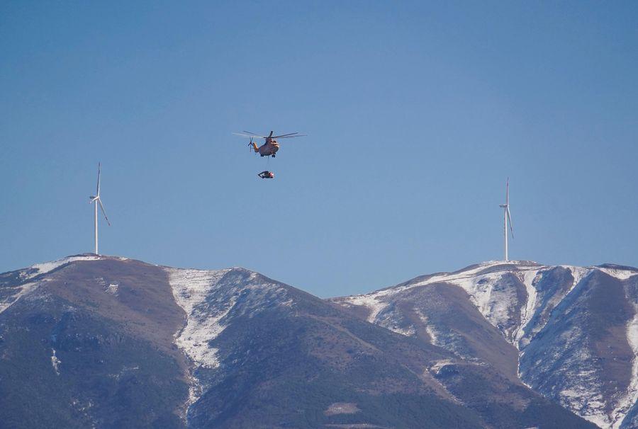 Mi-26 heavy transport helicopter loaded with an excavator flies towards Abuluoha Village in Butuo County of Liangshan Yi Autonomous Prefecture, southwest China's Sichuan Province, Dec. 6, 2019. (Xinhua/Wang Xi)