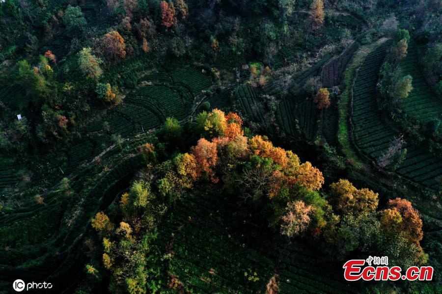 Aerial photo taken on December, 9 2019 shows tea garden in Qianjiang District in Chongqing, southwest China. (Photo/ICphoto)