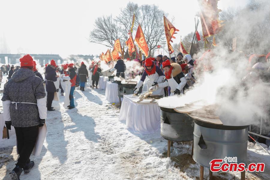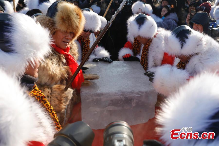 The first block of ice was pulled from the Songhua River in Harbin, the capital of northeastern China's Heilongjiang province, on December 7, 2019 to mark the start of the city's annual ice harvest. A group of workers in traditional local costumes pulled out the first block at a ceremony launching the three-week harvest, representing a folk custom of ice collecting that has a history of more than 100 years. After the head worker read a blessing, the workers drank some wine and then started the work. The ceremony attracted thousands of residents and tourists despite the extreme cold and strong wind on the frozen river. Every winter, an avalanche of visitors from home and abroad descends on Harbin for the country's biggest winter gala-the Harbin International Ice and Snow Festival. (Photo: China News Service/Lv Pin)