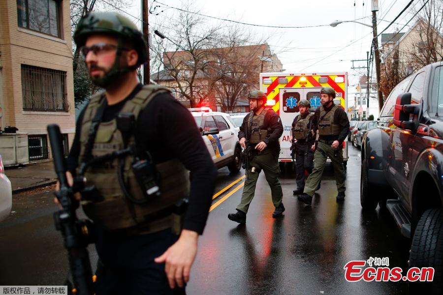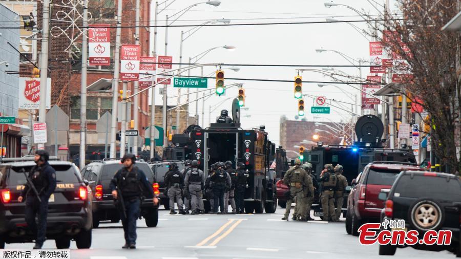 Antiterrorism unit arrive to the scene of a shooting in Jersey City, Tuesday, Dec. 10, 2019, in New Jersey. (Photo/Agencies)