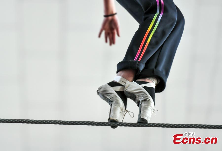A student walks on a tightrope during a daily training at a Dawazi art center in Yengisar County in the southwest China’s Xinjiang Uyghur Autonomous Region, December 17, 2019. Tightrope walking is known as Dawazi in Xinjiang, and it is believed to have been performed for about 2,000 years. Traditional Dawazi performers walk on a tightrope made of grass, 15 to 21 meters above the ground, without wearing a safety harness or any protective equipment. Dawazi was given national intangible cultural heritage status in China in 2006. (Photo: China News Service/ Liu Xin)