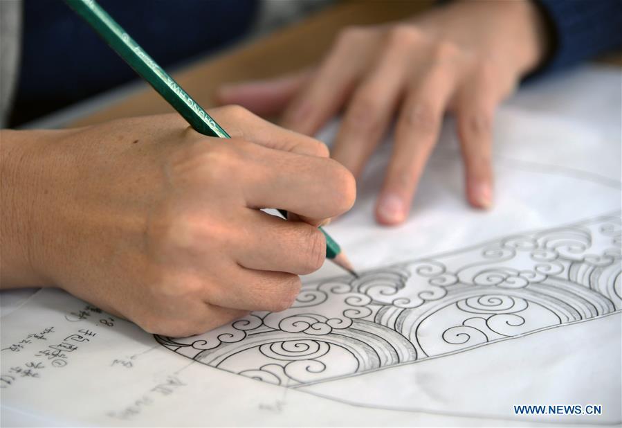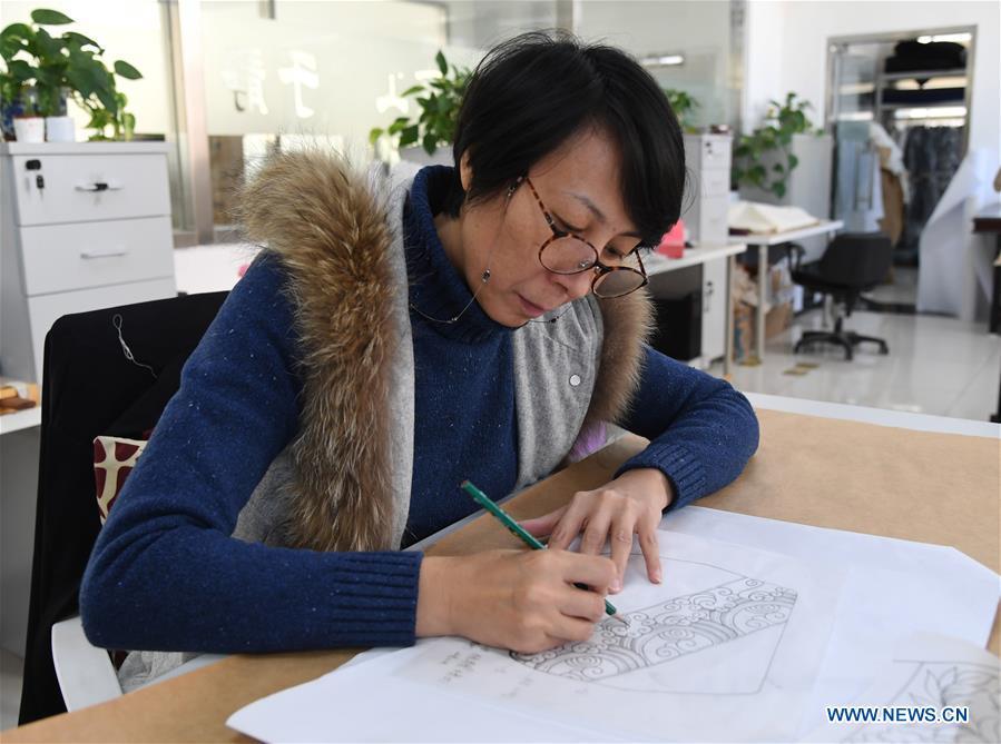 Photo taken on Dec.11 shows Yu Jing, a Beijing embroidery artist, designing the embroidery pattern at her workshop in Beijing, capital of China. Yu Jing, who has been making Beijing embroidery since 2004, established a Beijing embroidery workshop with some of her artist friends two years ago, hoping to add some modern elements to this traditional Chinese craft. Beijing embroidery, also known as Imperial embroidery, is known as one of the eight exquisite handicrafts of Beijing. (Xinhua/Ren Chao)