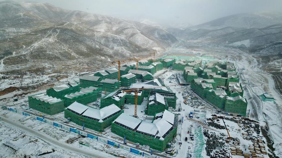 An aerial photo taken with a drone on Dec. 10, 2019 shows Zhangjiakou Winter Olympic Village in Chongli, north China's Hebei Province. (Xinhua/Yang Shiyao)