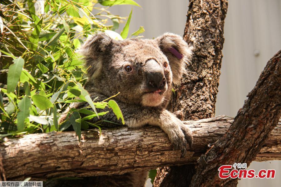 This handout photo taken and released on December 17, 2019 by the Taronga Zoo shows a rescued koala in its temporary shelter at the Taronga Zoo in Sydney. A dozen koalas have been rescued from the path of bushfires raging near Sydney, conservationists said on December 17, as devastating blazes increasingly encroach on critical habitat. (Photo/Agencies)