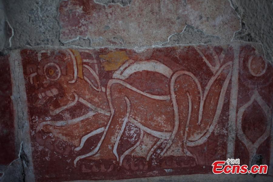 A fragmented mural depicting a jaguar is seen on the walls of the Patio of the Jaguars at La Ventilla, one of the most extensively excavated neighborhoods in the ancient city of Teotihuacan, in San Juan Teotihuacan, on the outskirts of Mexico City, Mexico November 7, 2019. (Photo/Agencies)