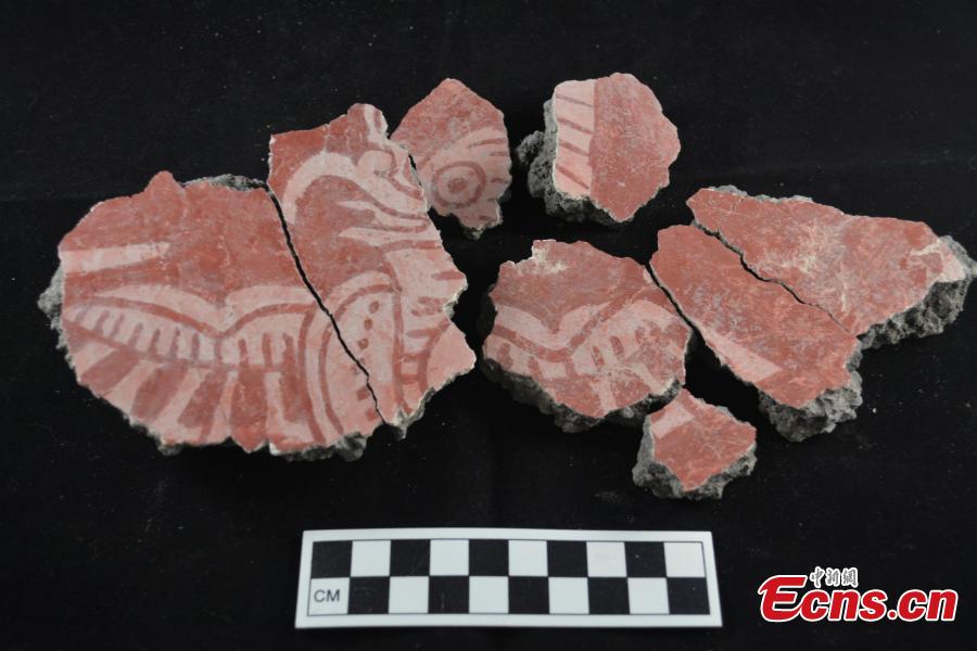 Mural fragments depicting a bird, recently discovered in the Tlajinga neighborhood of the ancient city of Teotihuacan, are seen in this handout picture taken on August 4, 2019. (Photo/Agencies)