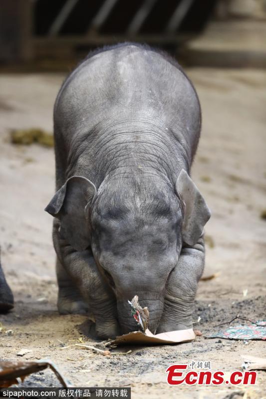 Gifts are distributed in the elephant house in Hagenbeck Zoo in Hamburg, Germany, December 24, 2019. (Photo/Sipaphoto)