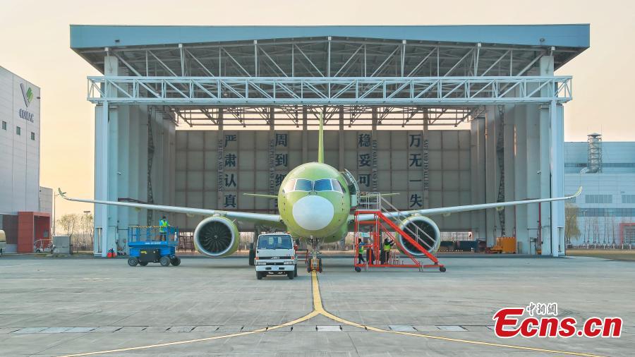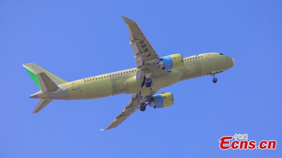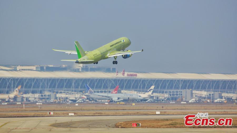 106 model aircraft, one prototype of China's home developed large passenger C919 jetliner, completes its first flight in Shanghai on December 27, 2019, according to the Commercial Aircraft Corporation of China (COMAC). (Photo: China News Service/ Wang Jiliang)