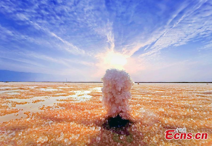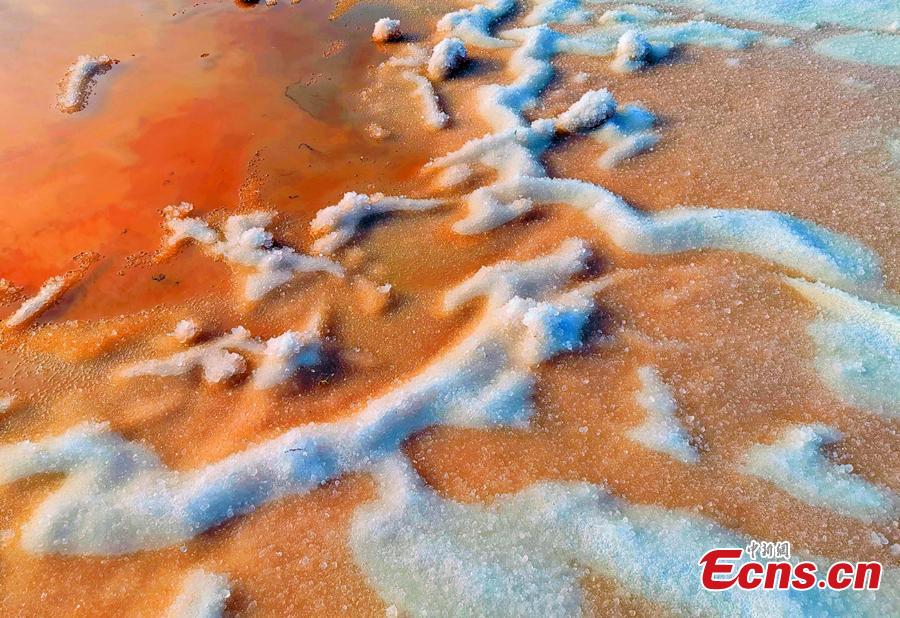 Photo taken on Dec. 28, 2019 shows coral-shaped "flowers" grow out of the surface of Yuncheng Salt Lake in Shanxi Province. Yuncheng Salt Lake, known as the "Dead Sea of China," takes on a wonderful look as mirabilite crystallizes on the lake surface in winter. (Photo/Cnsphoto)