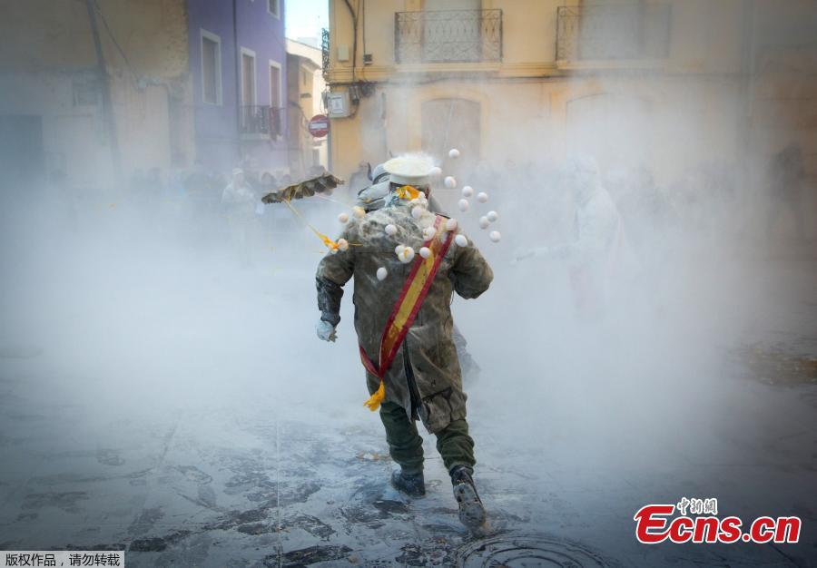 During this 200-year-old traditional festival participants known as Els Enfarinats (those covered in flour) dress in military clothes and stage a mock coup d'etat as they battle using flour, eggs and firecrackers outside the city town hall as part of the celebrations of the Day of the Innocents, a traditional day in Spain for pulling pranks. (Photo/Agencies)