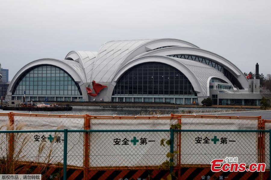 The Tokyo Tatsumi International Swimming Center is seen behind the safety wall of a construction site in Tokyo, Japan, December 30, 2019. The characters read: "Safety First". (Photo/Agencies)