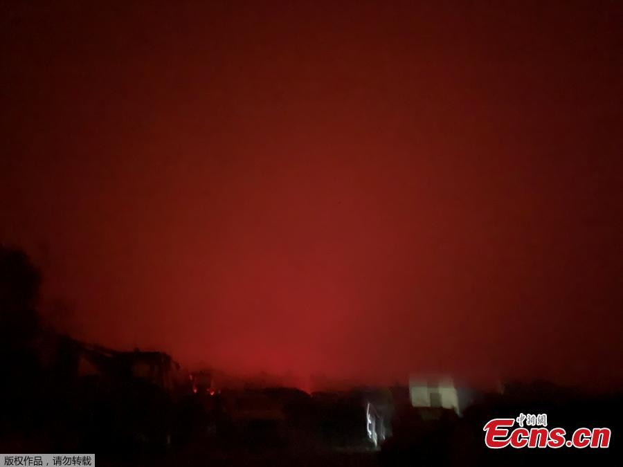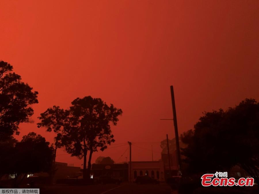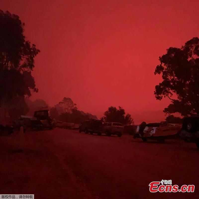 The sky glows red as bushfires continue to rage in Mallacoota, Victoria, Australia, December 31, 2019, in this photo obtained from social media. (Photo/Agencies)