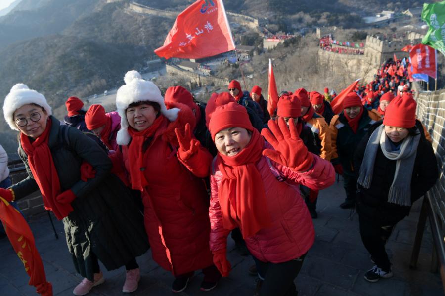 People climb the Badaling section of the Great Wall to pray for blessings on New Year's Day, on Jan 1, 2020. (Photo by Wei Xiaohao/chinadaily.com.cn)