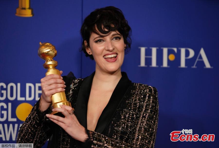 Phoebe Waller-Bridge poses backstage with her Best Performance by an Actress in a Television Series-Musical or Comedy award for "Fleabag" .(Photo/Agencies)