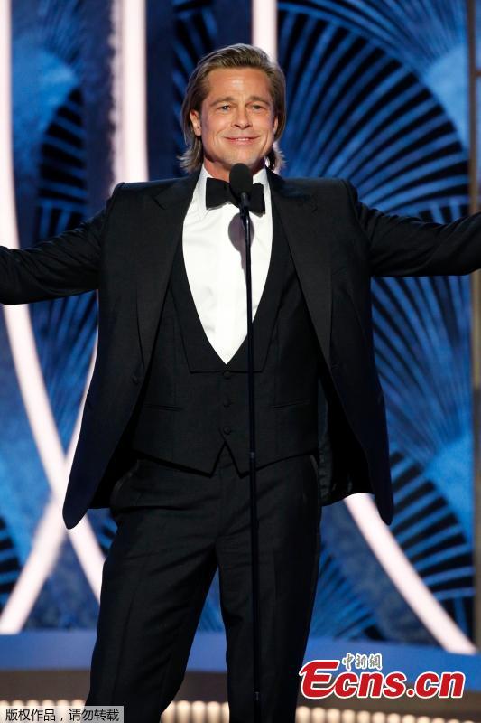 Brad Pitt accepts the award for Best Supporting Actor at the 77th Golden Globe Awards ceremony held in Beverly Hills, California, U.S., January 5, 2020. (Photo/Agencies)