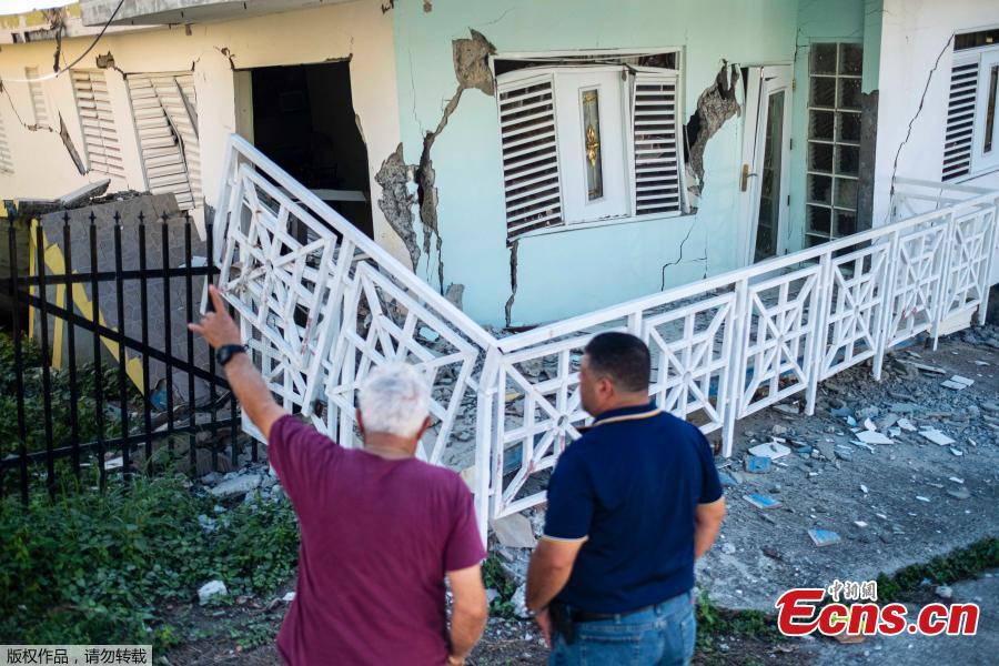 People pass by a house damaged by a 5.8 earthquake in Guanica, Puerto Rico on January 6, 2020. (Photo/Agencies)