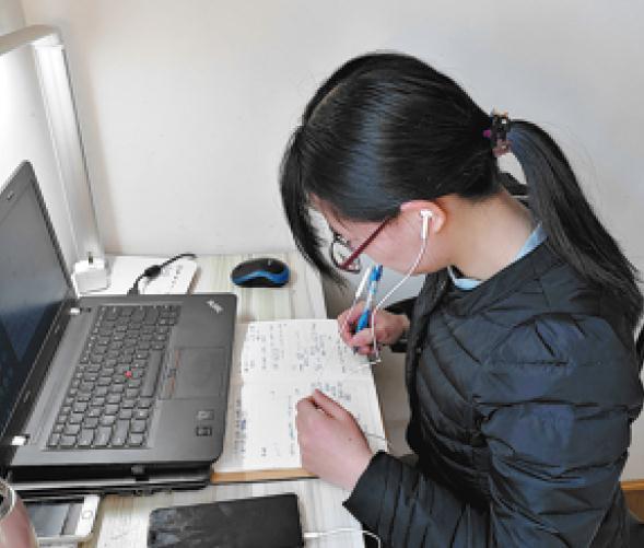 Ge Hui, a volunteer manning the hotline set up by psychologist Lin Zi, answers a call seeking counseling. [Photo/China Daily]