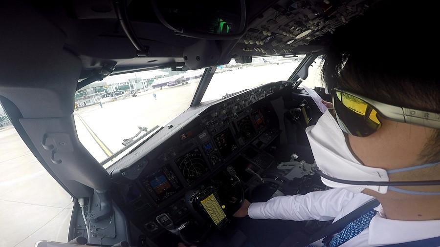 Zhong Rui, pilot of Flight MF818, is heading to pick up stalled Chinese travelers in Manila, the capital of the Philippines on Feb 5, 2020. (Photo provided to chinadaily.com.cn)