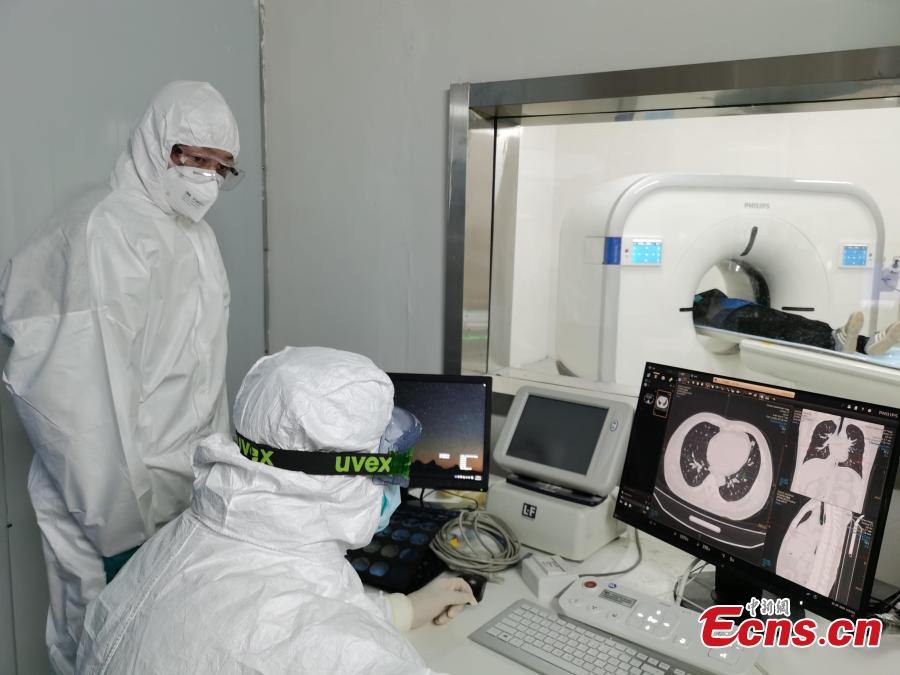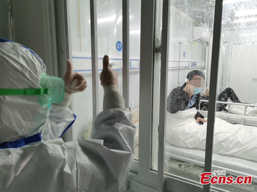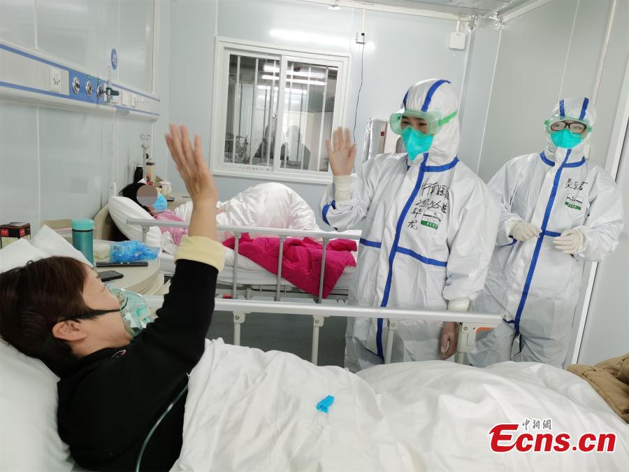 Doctors check a patient's health at Leishenshan, or "Thunder God Mountain", Hospital in Wuhan, Central China's Hubei province on Feb 9, 2020. A second batch of patients infected with the novel coronavirus are received in the hospital on Sunday night,February 9, 2020, making the number of patients in the hospital reach 80.(Photo: China News Service/ Gao Xiang)