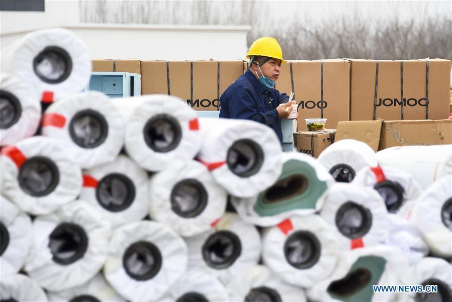 A worker has lunch at the construction site of a makeshift hospital in Anlu City, which is under the administration of Xiaogan City, in central China's Hubei Province, Feb. 11, 2020. To fight the novel coronavirus pneumonia (NCP) epidemic, a makeshift hospital replicating Beijing's SARS treatment model in 2003 is under construction in Anlu City, central China's Hubei Province, with a capacity of 418 beds. The construction of the first ward is expected to be completed on Feb. 15. The city of Xiaogan has reported 2,642 confirmed cases of NCP by the end of Monday, including 412 cases reported in Anlu. (Xinhua/Hu Huhu)