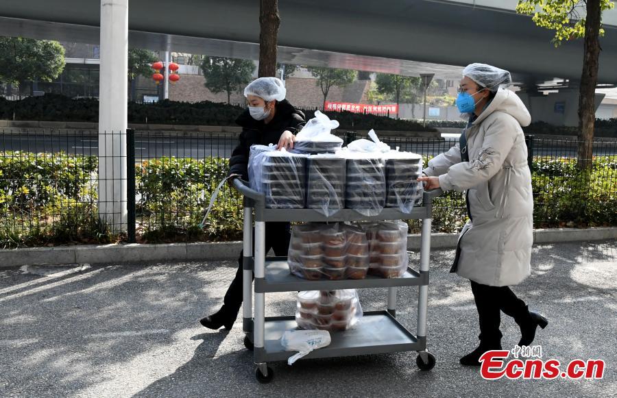 A restaurant provides free takeaways to medical workers in Wuhan, Central China’s Hubei province. (Photo/China News Service)