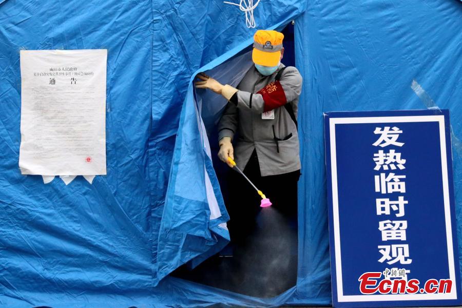 A worker sprays disinfectant at a railway station in Xianyang, Shaanxi province. (Photo/China News Service)