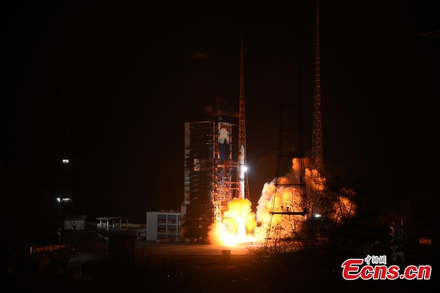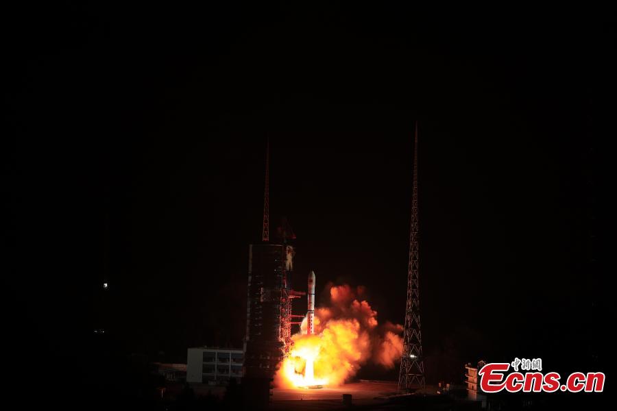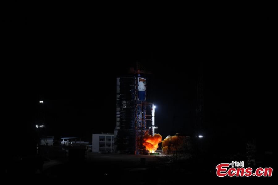 Four new technology experiment satellites take off on a Long March-2D carrier rocket from the Xichang Satellite Launch Center in southwest China's Sichuan Province on February 20, 2020. The satellites, launched by a Long March-2D carrier rocket at 5:07 a.m. (Beijing Time), will be mainly used for the new Earth-observation technology experiment. The carrier rocket and two of the satellites were developed by the Shanghai Academy of Spaceflight Technology, the other two satellites were respectively developed by the Harbin Institute of Technology and the DFH Satellite Co. Ltd. (Photo: China News Service/Sun Gongming)