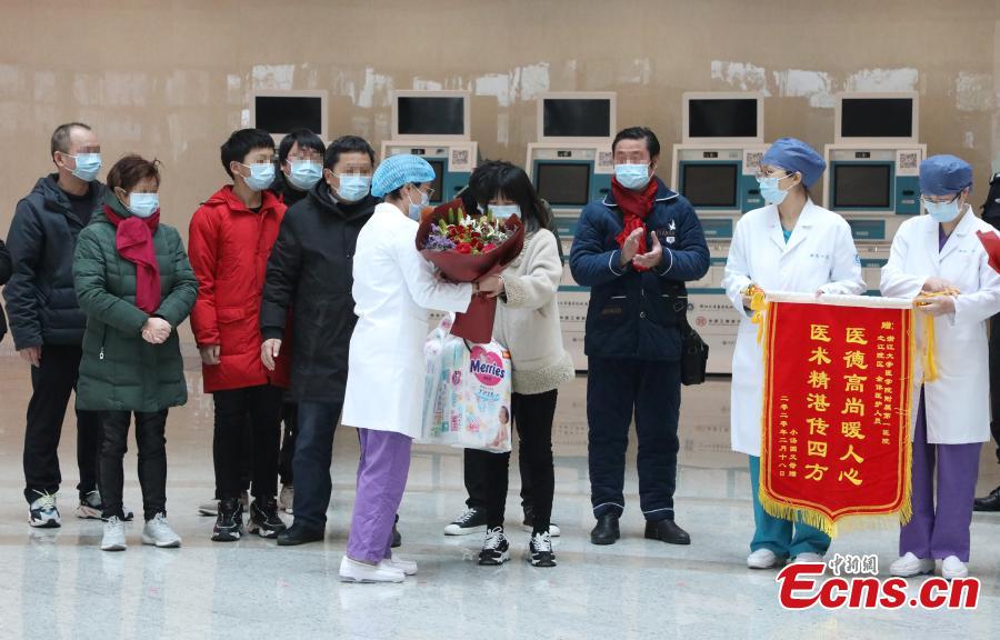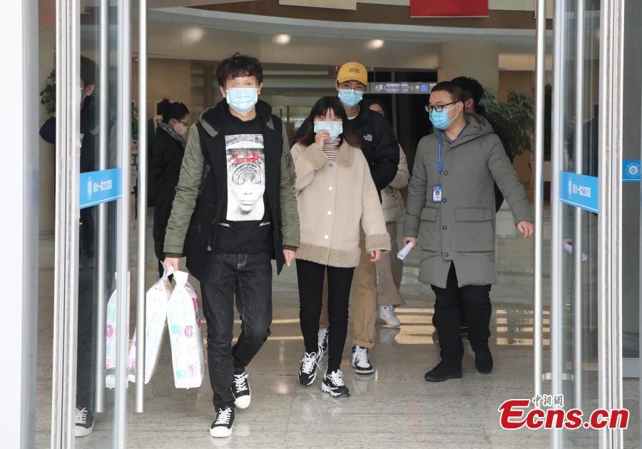 A couple infected with the novel coronavirus are cured and discharged from a hospital in Hangzhou, East China’s Zhejiang province on February 19, 2020. The couple, who are parents of Xiao Tangyuan, a healthy baby boy born on February 8, have since been cured and given the green light to return home after receiving treatment at the hospital. As the baby boy was born on the Chinese Lantern Festival, his family gave him the nickname "Xiao Tangyuan" (Little Sweet Dumpling). (Photo: China News Service/Wang Weichen)