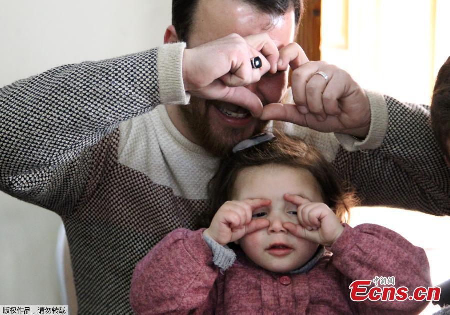 Syrian father Abdullah al-Mohammed gestures with his three-year-old daughter Salwa at their home in Sarmada, a town in Syria's last rebel pocket in the Idlib province, which Russian-backed Syrian regime forces are trying to crush on February 19, 2020. In Syria's Idlib, there's no escaping the war, so Abdullah al-Mohammed says the only way he found to reassure his daughter Salwa was to turn the shelling into a game. A video in which she laughs every time an explosion goes off was widely shared on social media in recent days as a heartening but grim reminder of Idlib residents' daily lives. (Photo/ Agencies)
